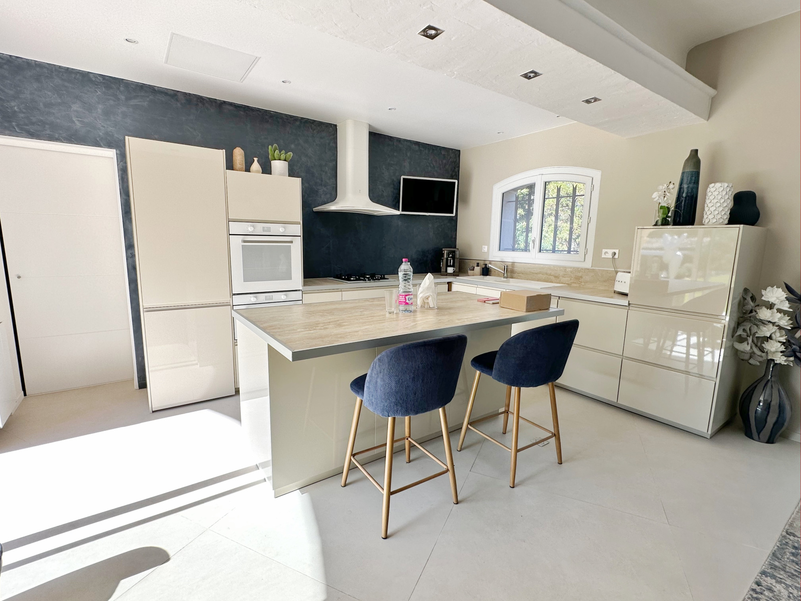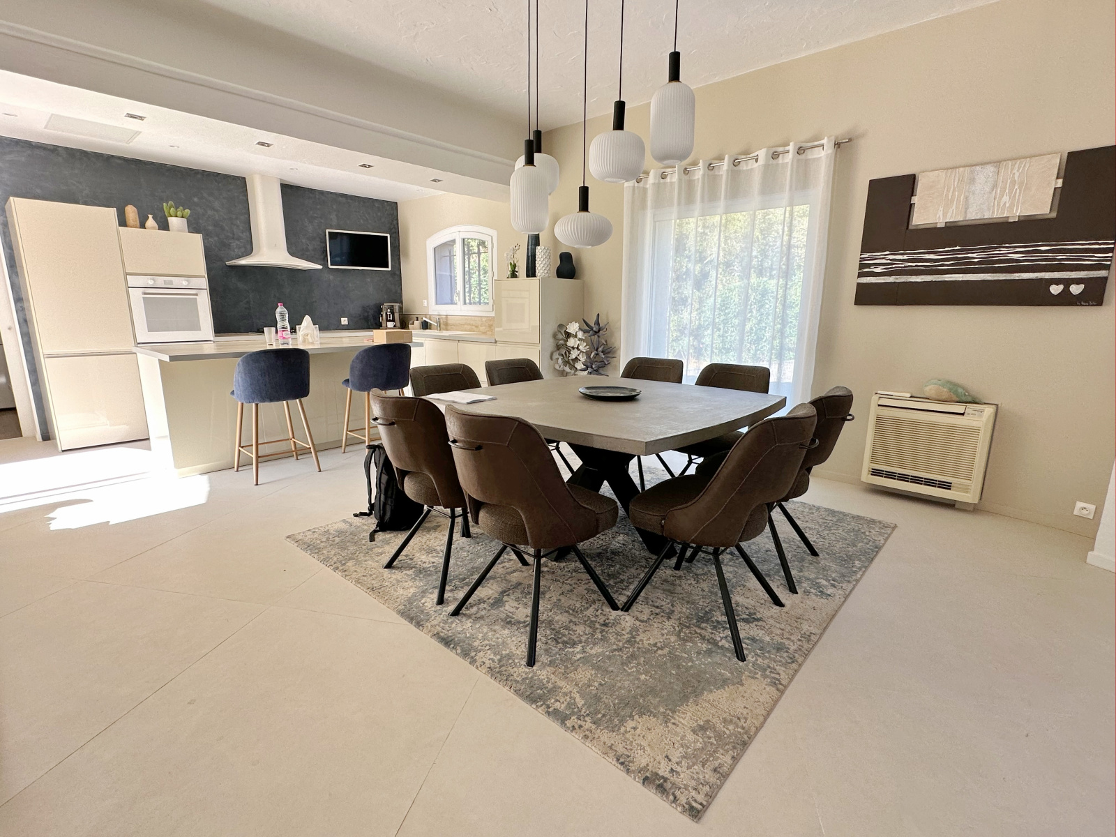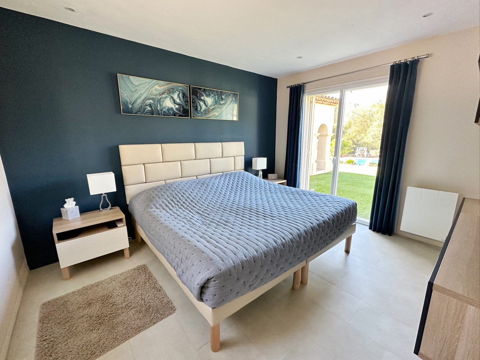 Cette proprieté se situe dans un quartier recherché et sécurisé de la commune du Muy, près de Sainte Maxime dans un environnement verdoyant et calme sur un terrain de 11 504 m² : Elle est composée d'une villa de 186,77m² de standing entièrement rénovée avec goût et matériaux de qualité, très lumineuse comprenant : une entrée avec placard, un wc invité, une superbe pièce de vie de 50m² avec espace salon salle à manger et une cuisine ouverte entièrement équipée, une arrière cuisine / buanderie vient compléter cet espace. La partie nuit se compose de deux chambres, d'une salle d'eau avec wc et à l'étage d'une chambre avec salle de bains et wc. Sur la propriété se trouve également un studio indépendant avec sa salle d'eau et wc, ansi qu'une Maison d'invités indépendante comprenant : deux chambres, une cuisine équipée et une salle de bains avec wc. L' extérieur offre quant à lui de nombreuses terrasses et espaces de détente, une piscine de 16m x 6m avec pool house entièrement aménagé avec une cuisine d'été. La propriété comprend également un garage, un cabanon de rangement.