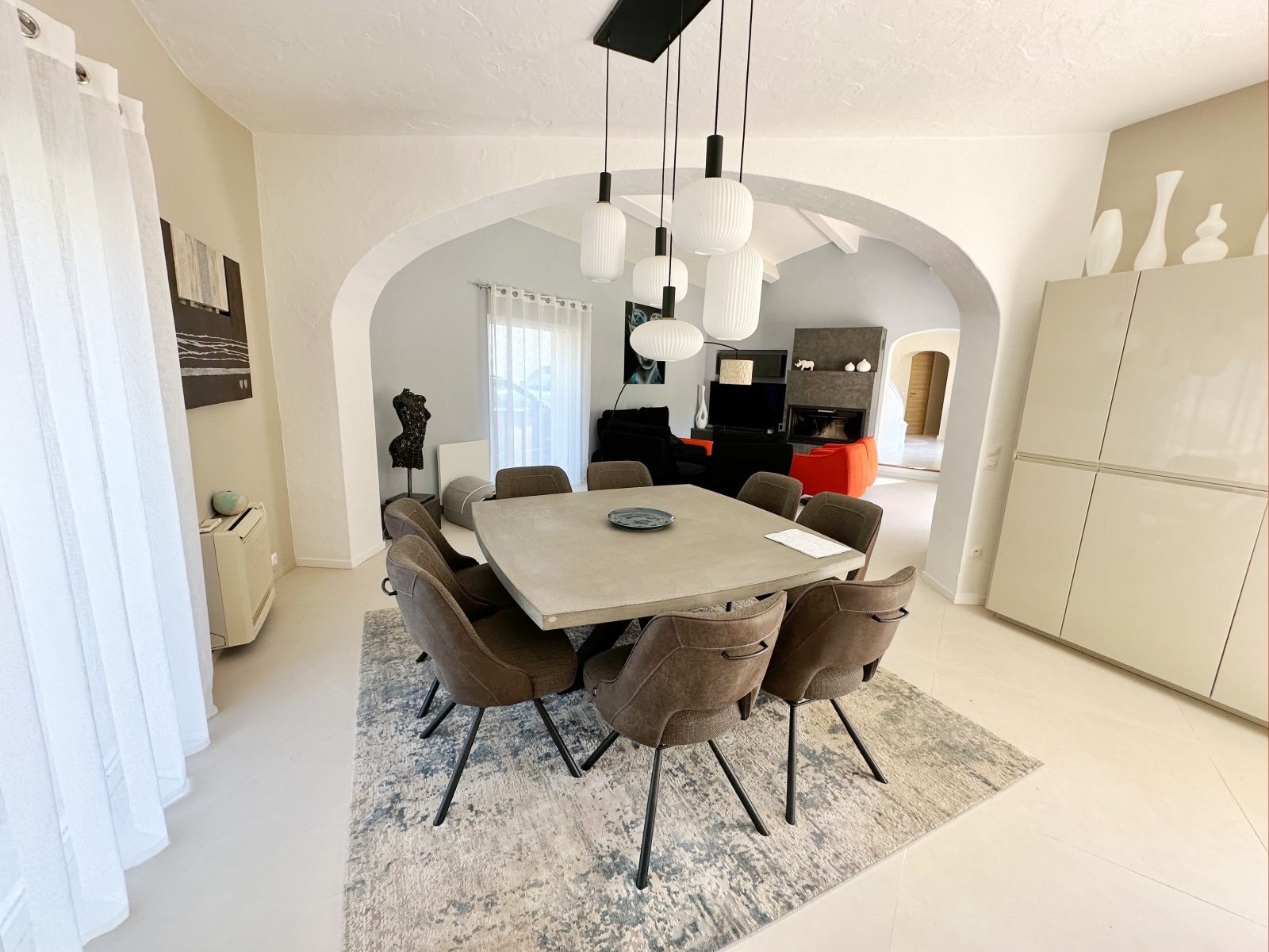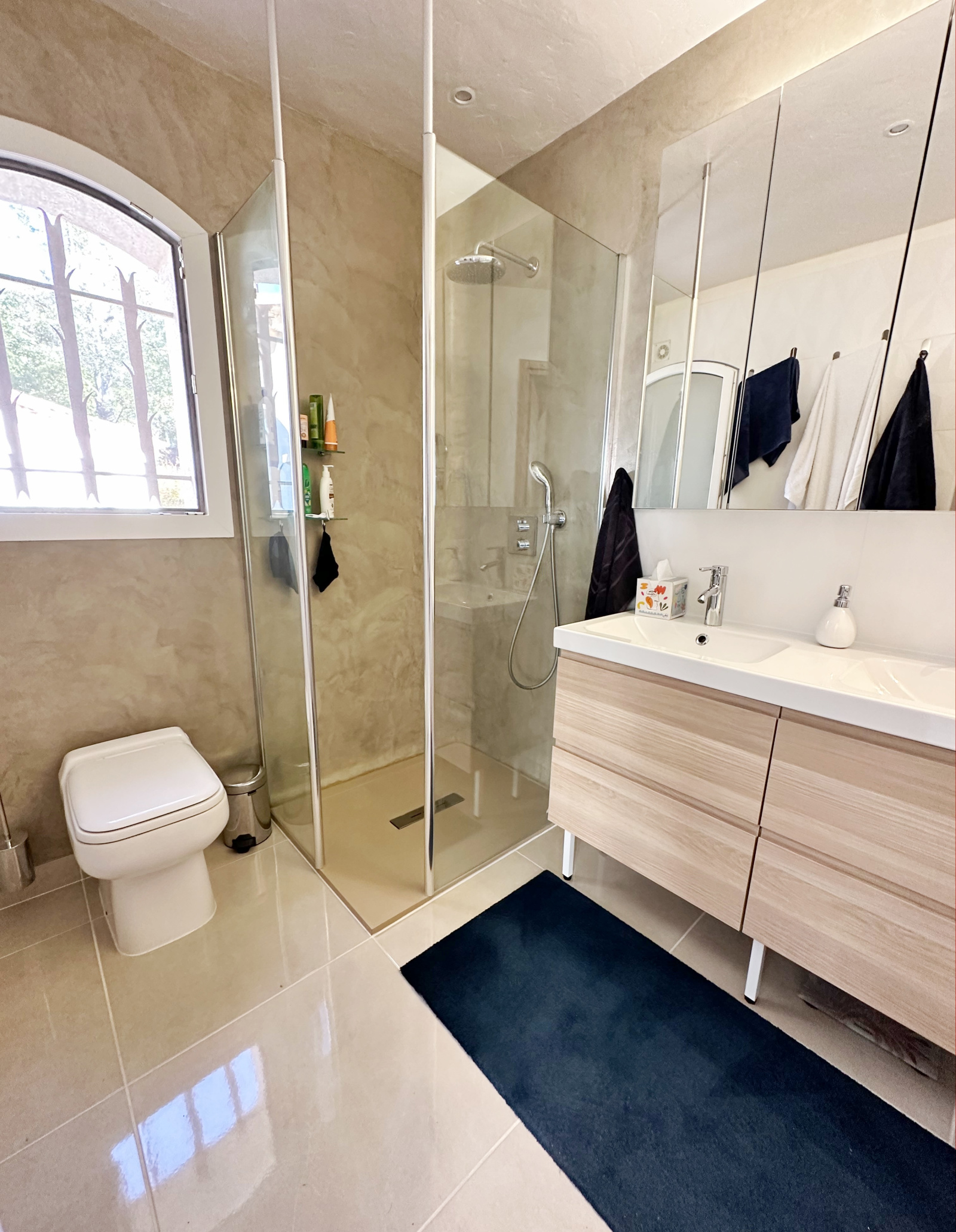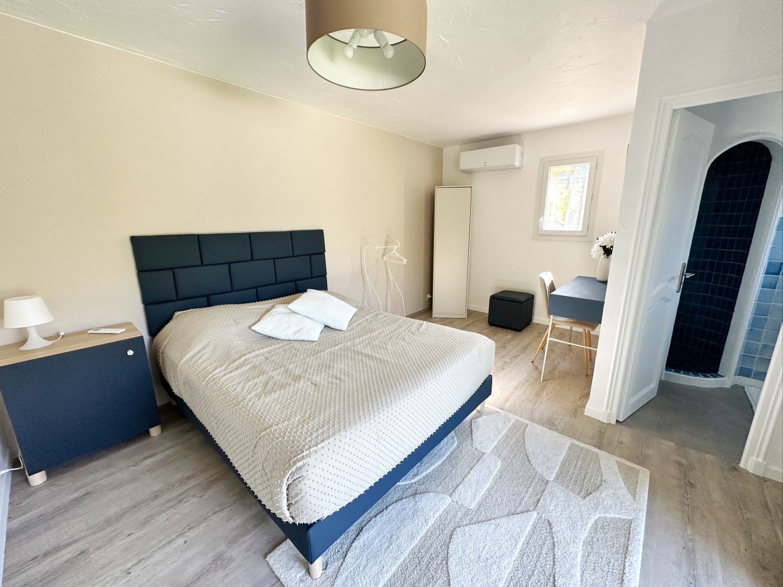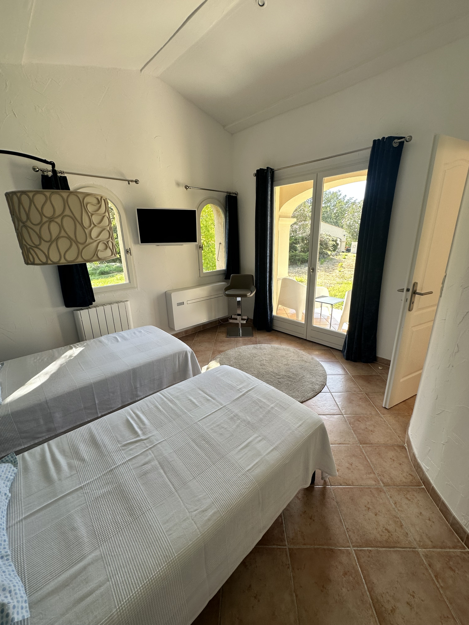 Cette proprieté se situe dans un quartier recherché et sécurisé de la commune du Muy, près de Sainte Maxime dans un environnement verdoyant et calme sur un terrain de 11 504 m² : Elle est composée d'une villa de 186,77m² de standing entièrement rénovée avec goût et matériaux de qualité, très lumineuse comprenant : une entrée avec placard, un wc invité, une superbe pièce de vie de 50m² avec espace salon salle à manger et une cuisine ouverte entièrement équipée, une arrière cuisine / buanderie vient compléter cet espace. La partie nuit se compose de deux chambres, d'une salle d'eau avec wc et à l'étage d'une chambre avec salle de bains et wc. Sur la propriété se trouve également un studio indépendant avec sa salle d'eau et wc, ansi qu'une Maison d'invités indépendante comprenant : deux chambres, une cuisine équipée et une salle de bains avec wc. L' extérieur offre quant à lui de nombreuses terrasses et espaces de détente, une piscine de 16m x 6m avec pool house entièrement aménagé avec une cuisine d'été. La propriété comprend également un garage, un cabanon de rangement.